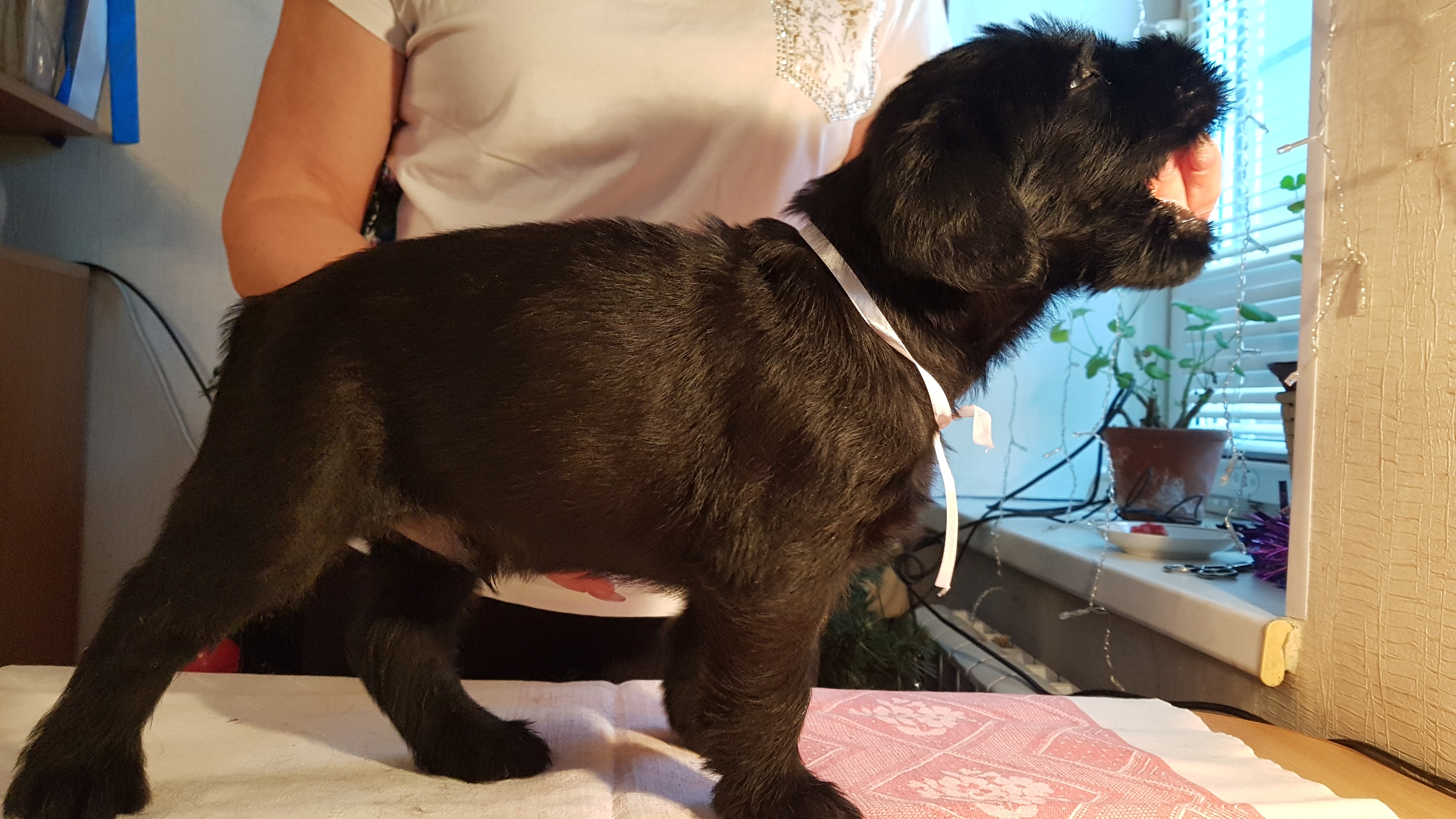 Классический жесткошерстный, идеально среднего роста кобель, в его происхождении четверть немецких собак спортивного рабочего разведения